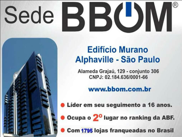 A BBom é uma empresa Business Franchising, onde significa que cada franqueado irá se beneficiar dos resultados obtidos nos trabalhos desenvolvidos em sua rede, grupo ou equipe da própria franqueada, isto é, você irá receber bonificações devido o desempenho de sua equipe, sendo assim, quanto melhor o seu trabalho e de sua equipe, mais voce e sua equipe ganham.